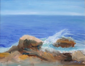 Jill Nichols, Pemaquid Surf, 11″ x 14″, oil on canvas. Painted plein air at Pemaquid Light.